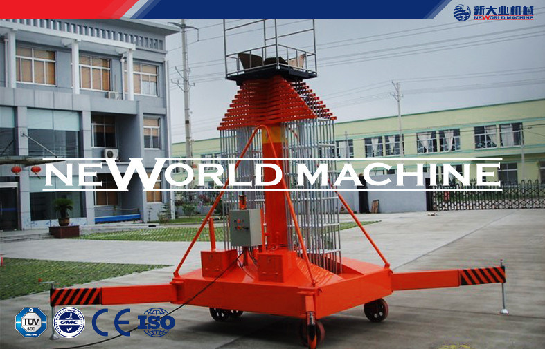 4 - 35m 200kg Elevated Work Platform / Electric Aerial Lift Safety Quick Details Place of Origin:China (Mainland) Brand Name:NEWORLD Model Number:SJT0.15-24 Lift Mechanism:Telescoping Lift Lift Drive / Actuation:Hydraulic Power:1.1KW*2 Rated Loading Capacity:150kg Min. Lifting Height:2.82m Max. Lifting Height:24m Weight:2200kg Certification:CE,ISO Warranty:12 months After-sales Service Provided:Engineers available to service Specification 1. This series of products subject
