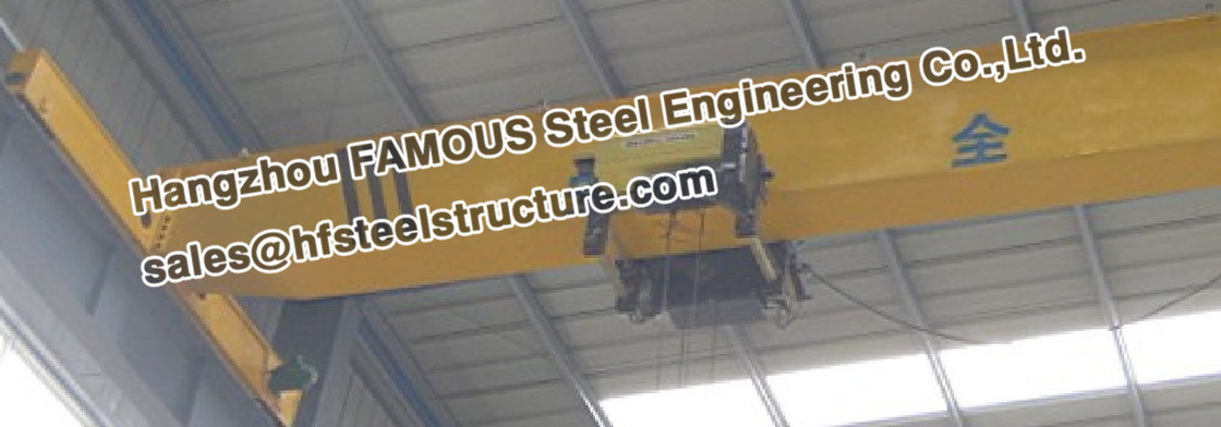 La grue de l'Europe soulevant les ponts roulants a parfois également appelé la grue de déplacement aérien électrique (EOT), qui est un type de grue avec un pont mobile qui fonctionne sur les faisceaux élevés suspendus au-dessus. elle est employée dans divers bâtiments en acier industriels, atelier, entrepôt, hangars industriels, granges etc. Ceci permet à une charge d'être déplacée dans des trois haches à et de n'importe quel point dans l'espace de l'opération de la grue. En plus du pont, un système de grue de pont inclut un chariot et une grue qui peuvent se déplacer à travers la longueur du pont, et des faisceaux élevés, connus sous le nom de piste, au-dessus de laquelle le pont se déplace en avant et vers l'arrière. Le chariot se déplace de l'un côté à l'autre à travers le pont, perpendiculaire à la direction du mouvement du pont, portant avec lui la grue, qui peut être augmentée et abaissée du plancher pour placer la charge aux tailles variables. La conception de grue de pont permet à des configurations multiples d'accomplir ce mouvement. Les deux catégorisations principales dessus-courent contre les grues et la simple-poutre de pont sous-courantes contre des grues de pont de double-poutre. Ceci permet quatre configurations générales : simple-poutre dessus-courant, double-poutre dessus-courant, sous-fonctionnement de simple-poutre, et grues de pont sous-courantes de double-poutre.