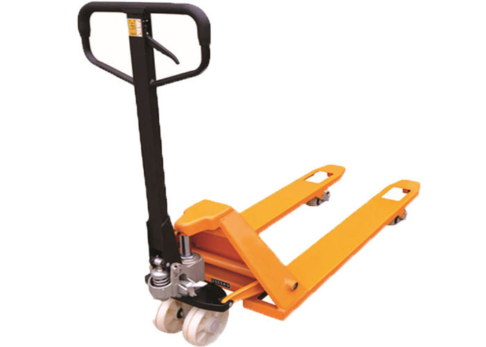Manual Hydraulic Material Handler Equipment with Steel Construction General Description: With the feature of rugged construction, integral pump and excellent pricing, YING-LIFT Pallet Jack, Pallet Trucks make the best value for your material handling needs. This series pallet jack has a 3-function hand control (raise, neutral and lower) and offers a spring-loaded self-righting safety loop handle to enhance comfort and ease of operation. Hardened chrome piston with protective