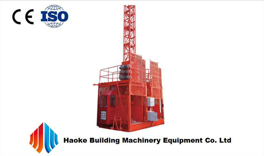 2000 kg Painted / Hot Dipped Zinc Construction Material Hoist SC200 / 200 Quick Detail: 1. Model No.: SC200,SC200/200 2. Brand Name: HAOKE 3. Material: Steel 4. Appearance: Plastic Spray Painted / Hot Galvanized 5. Rating loading capacity: 2000 6. Max lifting Height: 150M Description: SC series construction elevator, adopt external setting meshing rack and pinion type design,rated load is 1T, rated lifting height is 150m. Equipped with a national patent approved progressive